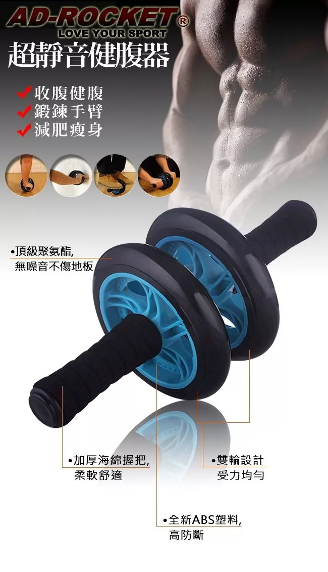【AD-ROCKET】超靜音滾輪健身器超值豪華組